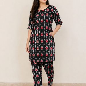 Black Sambalpuri Printed Cotton Kurti for Women | Ethnic Daily Wear Kurti