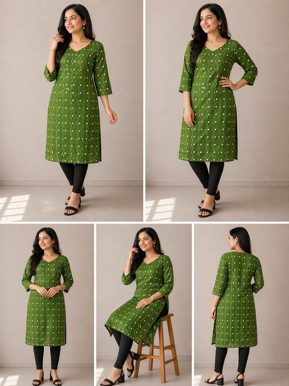 Made from breathable cotton fabric, it ensures maximum comfort for all-day wear. The soothing green color gives a fresh and natural vibe, making it perfect for office wear, casual outings, and everyday styling.