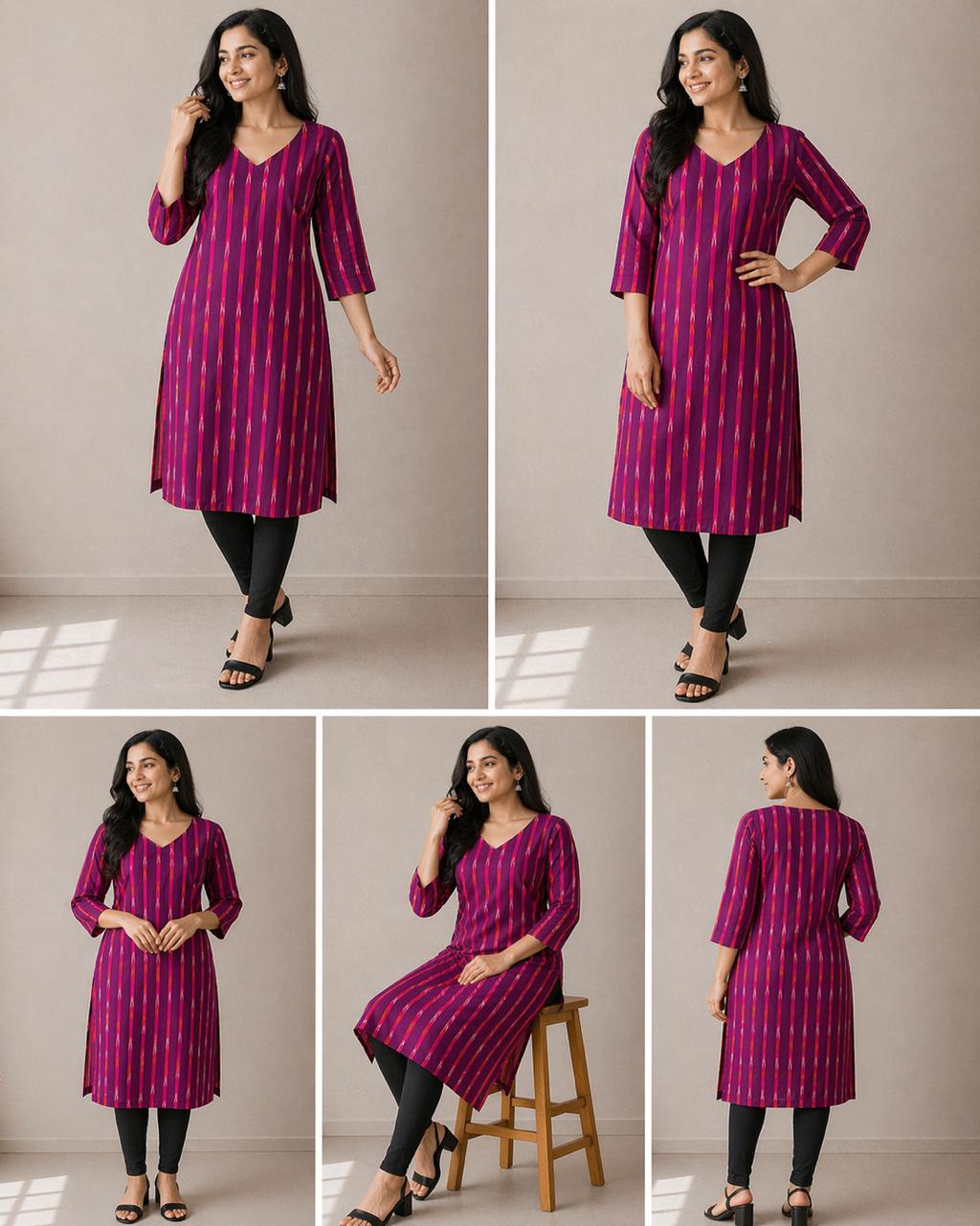 “Bottom wear shown is for styling purpose only. Product includes kurti only.”