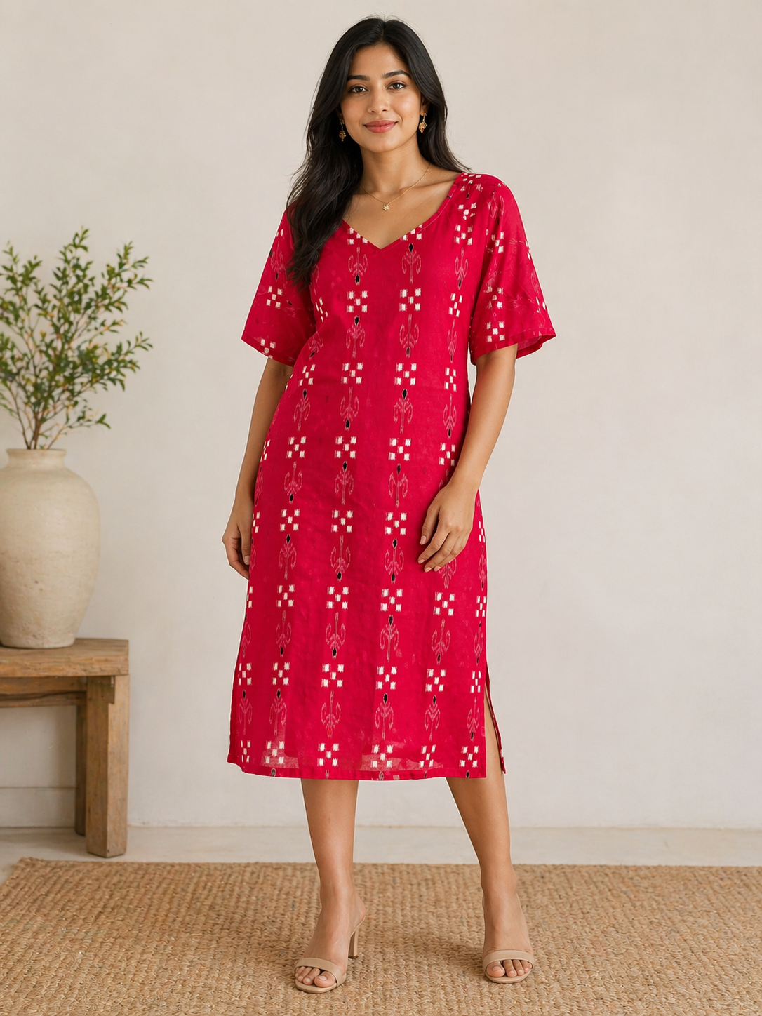 Upgrade your ethnic wardrobe with this elegant Red Sambalpuri Printed Kurti, designed to combine tradition with everyday comfort. Made from high-quality cotton fabric, this kurti features authentic Sambalpuri-inspired patterns that reflect rich handloom heritage.
